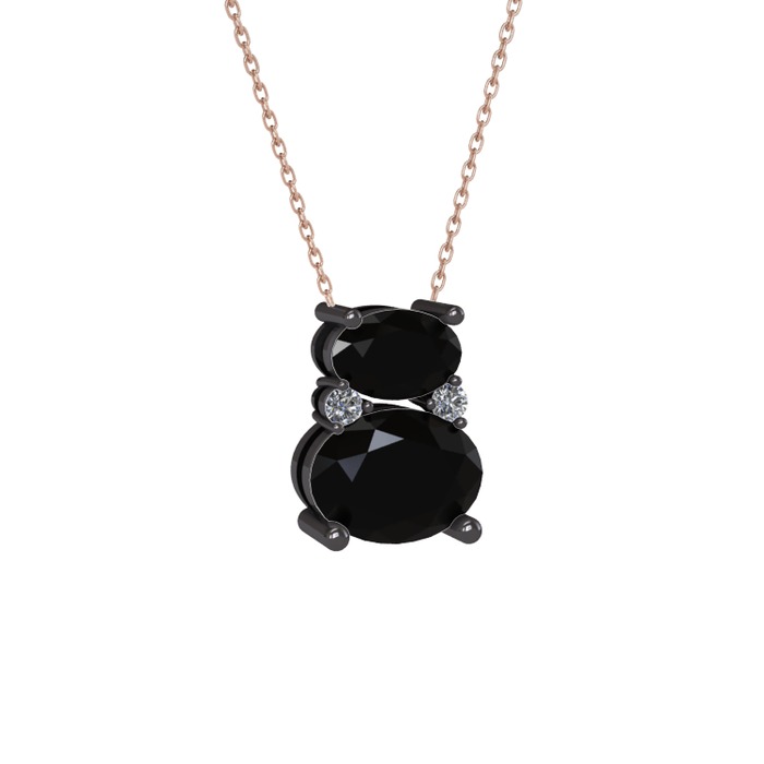 Siyah zirkon ve pırlanta 925 ayar siyah rodyum kaplama gümüş kolye (0.036 karat, 40 cm gümüş rolo zincir)