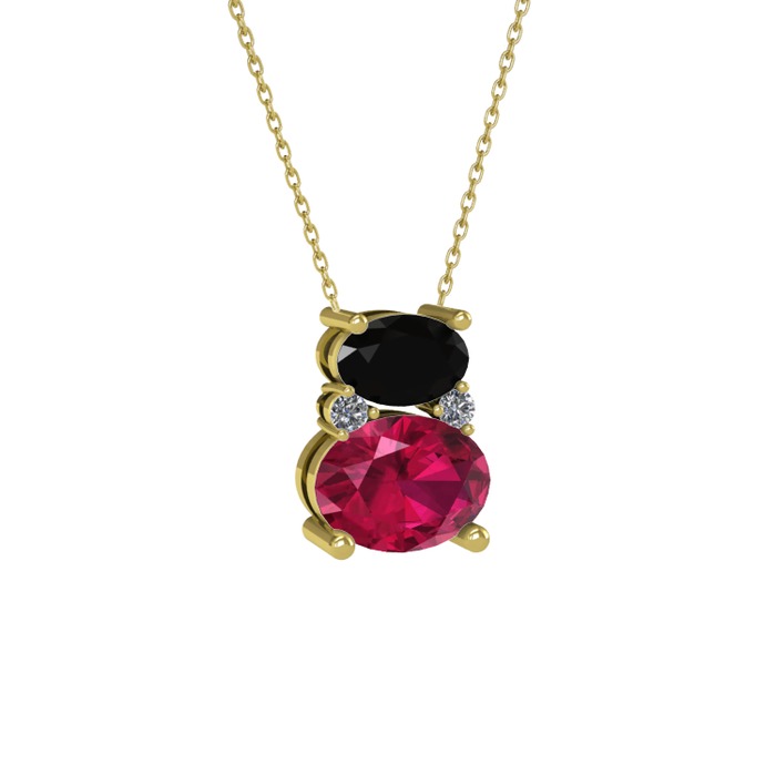 Siyah zirkon, rodolit garnet ve pırlanta 14 ayar altın kolye (0.036 karat, 40 cm altın rolo zincir)