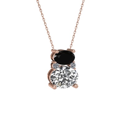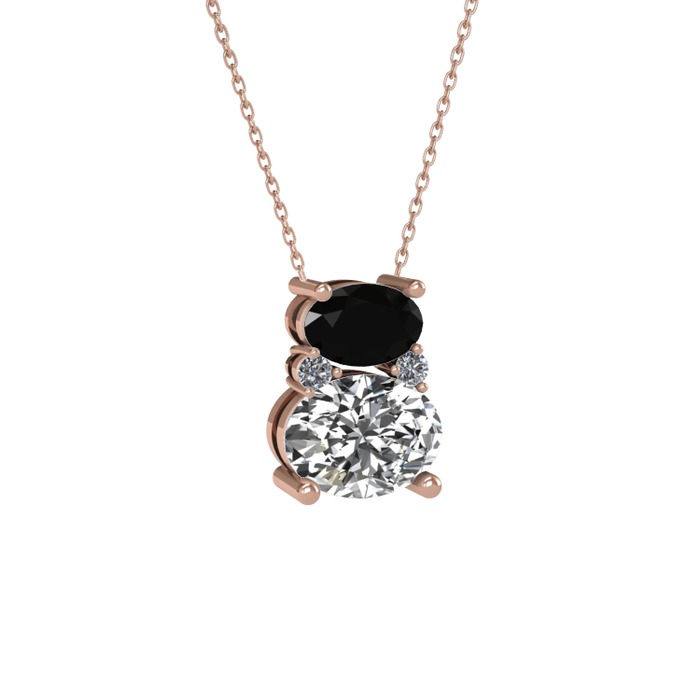 Siyah zirkon, swarovski ve pırlanta 14 ayar rose altın kolye (0.036 karat, 40 cm gümüş rolo zincir)