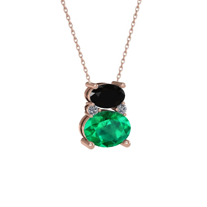 Siyah zirkon, yeşil kuvars ve pırlanta 925 ayar rose altın kaplama gümüş kolye (0.036 karat, 40 cm rose altın rolo zincir)