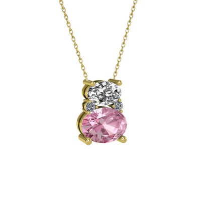 Swarovski, pembe kuvars ve pırlanta 18 ayar altın kolye (0.036 karat, 40 cm altın rolo zincir)