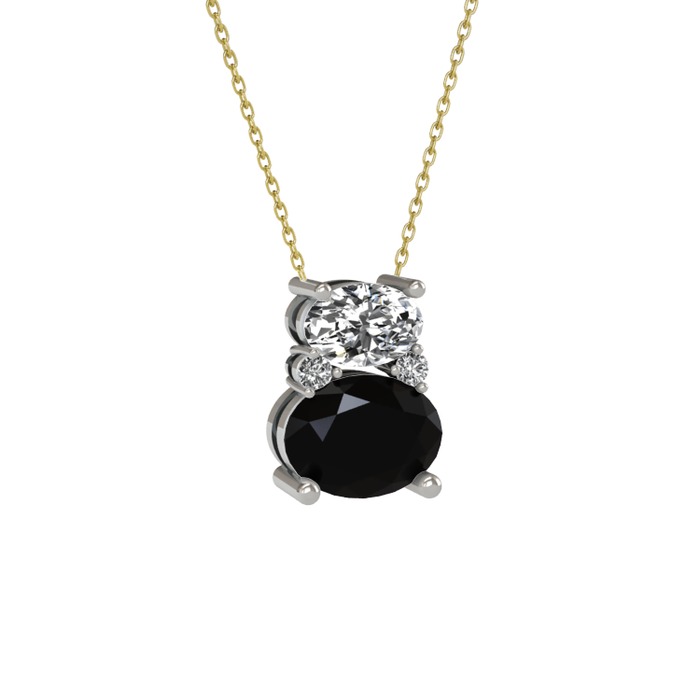 Swarovski ve siyah zirkon 18 ayar beyaz altın kolye (40 cm altın rolo zincir)