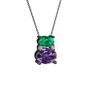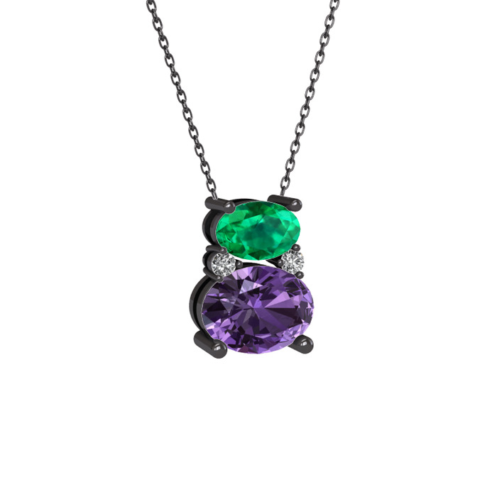 Yeşil kuvars, ametist ve swarovski 925 ayar siyah rodyum kaplama gümüş kolye (40 cm gümüş rolo zincir)