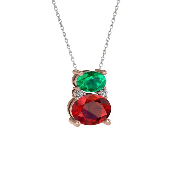 Yeşil kuvars, garnet ve swarovski 8 ayar rose altın kolye (40 cm gümüş rolo zincir)