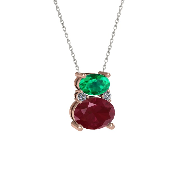 Yeşil kuvars, kök yakut ve pırlanta 925 ayar rose altın kaplama gümüş kolye (0.036 karat, 40 cm beyaz altın rolo zincir)