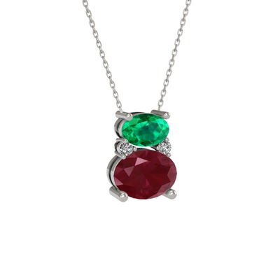 Yeşil kuvars, kök yakut ve swarovski 925 ayar gümüş kolye (40 cm beyaz altın rolo zincir)