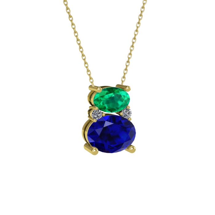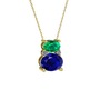 Yeşil kuvars, lab safir ve pırlanta 925 ayar altın kaplama gümüş kolye (0.036 karat, 40 cm altın rolo zincir)