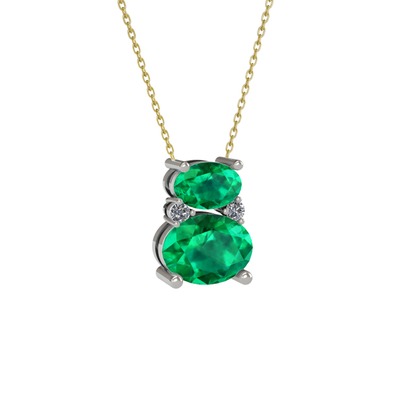 Yeşil kuvars ve pırlanta 18 ayar beyaz altın kolye (0.036 karat, 40 cm altın rolo zincir)