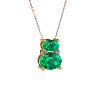 Yeşil kuvars ve pırlanta 8 ayar altın kolye (0.036 karat, 40 cm rose altın rolo zincir)