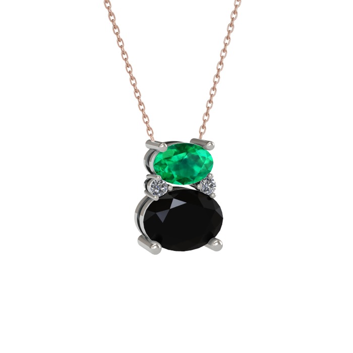 Yeşil kuvars, siyah zirkon ve pırlanta 18 ayar beyaz altın kolye (0.036 karat, 40 cm gümüş rolo zincir)