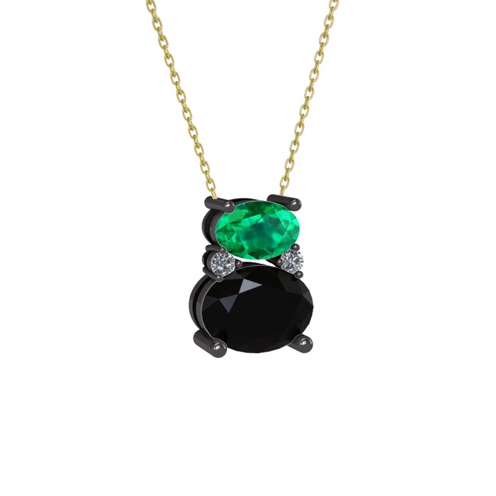 Yeşil kuvars, siyah zirkon ve pırlanta 925 ayar siyah rodyum kaplama gümüş kolye (0.036 karat, 40 cm altın rolo zincir)