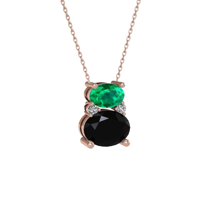 Yeşil kuvars, siyah zirkon ve swarovski 18 ayar rose altın kolye (40 cm gümüş rolo zincir)