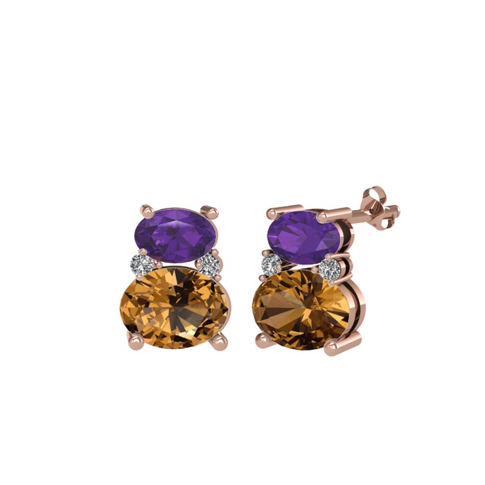 Ametist, dumanlı kuvars ve beyaz zirkon 925 ayar rose altın kaplama gümüş küpe