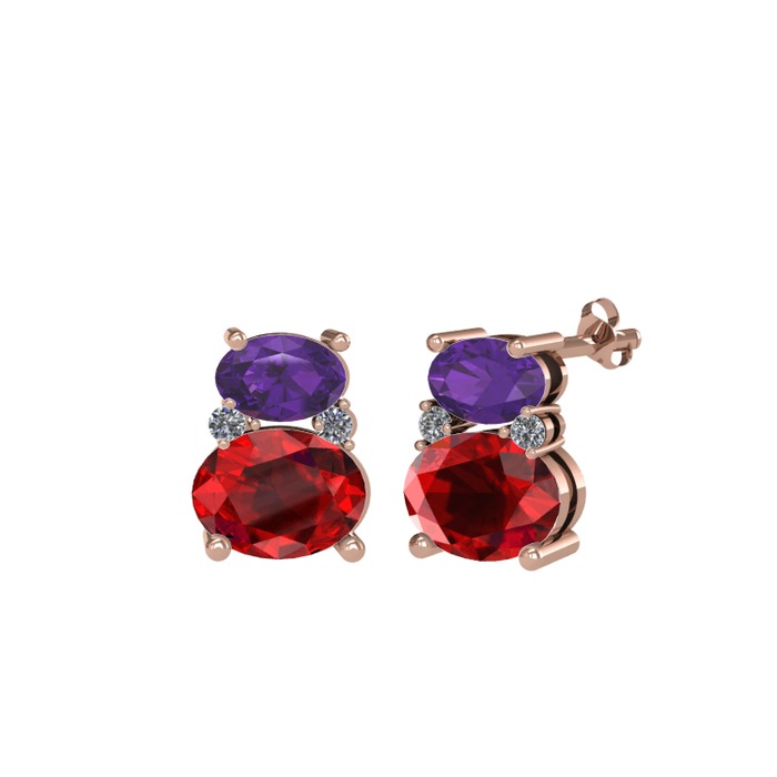 Ametist, garnet ve pırlanta 18 ayar rose altın küpe (0.072 karat)