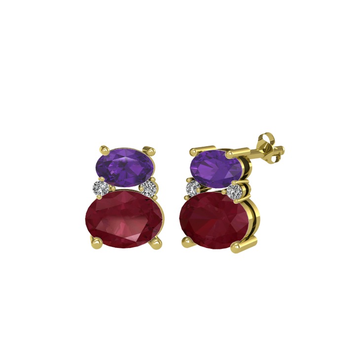 Ametist, kök yakut ve swarovski 8 ayar altın küpe