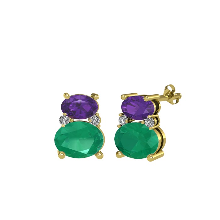 Ametist, kök zümrüt ve swarovski 925 ayar altın kaplama gümüş küpe