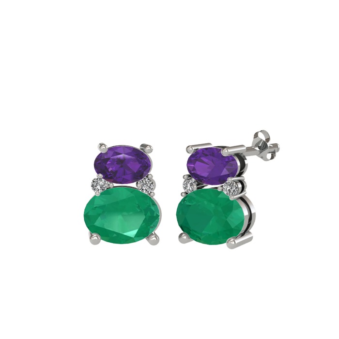Ametist, kök zümrüt ve swarovski 925 ayar gümüş küpe