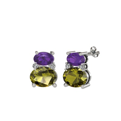 Ametist, peridot ve beyaz zirkon 925 ayar gümüş küpe