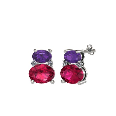 Ametist, rodolit garnet ve pırlanta 8 ayar beyaz altın küpe (0.072 karat)