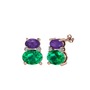 Ametist, yeşil kuvars ve beyaz zirkon 925 ayar rose altın kaplama gümüş küpe