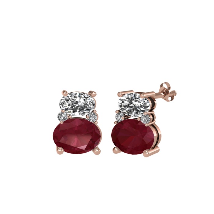 Beyaz zirkon ve kök yakut 925 ayar rose altın kaplama gümüş küpe