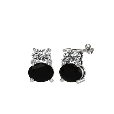 Beyaz zirkon ve siyah zirkon 8 ayar beyaz altın küpe