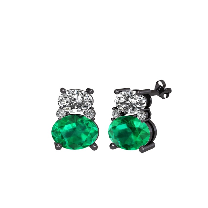 Beyaz zirkon, yeşil kuvars ve swarovski 925 ayar siyah rodyum kaplama gümüş küpe