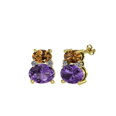 Dumanlı kuvars, ametist ve pırlanta 18 ayar altın küpe (0.072 karat)