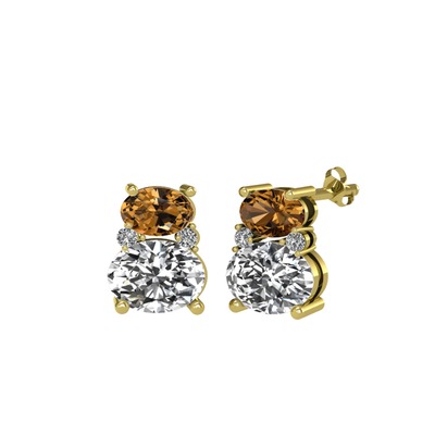 Dumanlı kuvars ve beyaz zirkon 925 ayar altın kaplama gümüş küpe