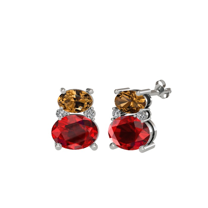 Dumanlı kuvars, garnet ve swarovski 14 ayar beyaz altın küpe