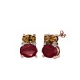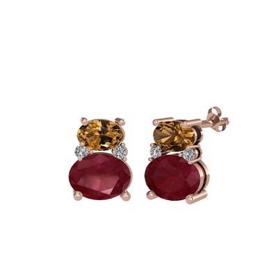 Dumanlı kuvars, kök yakut ve beyaz zirkon 18 ayar rose altın küpe