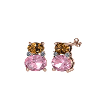 Dumanlı kuvars, pembe kuvars ve pırlanta 925 ayar rose altın kaplama gümüş küpe (0.072 karat)