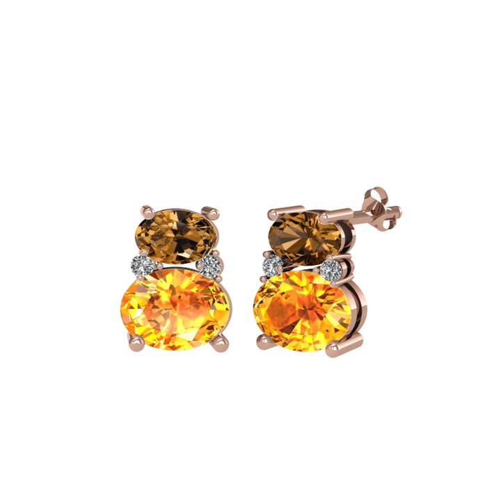 Dumanlı kuvars, sitrin ve beyaz zirkon 925 ayar rose altın kaplama gümüş küpe