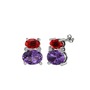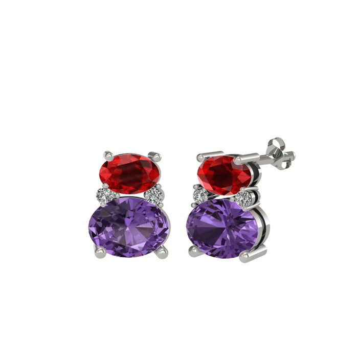 Garnet, ametist ve beyaz zirkon 8 ayar beyaz altın küpe