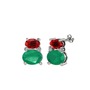 Garnet, kök zümrüt ve beyaz zirkon 14 ayar beyaz altın küpe
