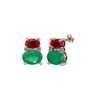 Garnet, kök zümrüt ve pırlanta 8 ayar rose altın küpe (0.072 karat)