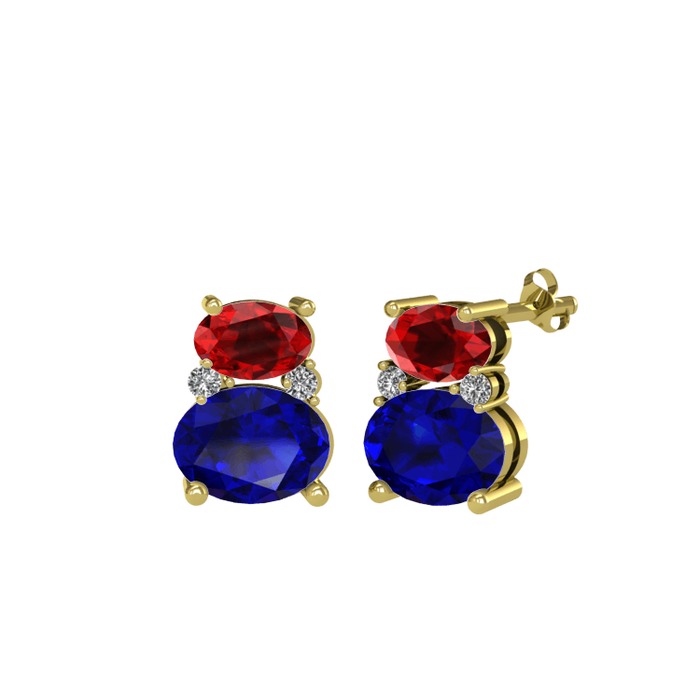 Garnet, lab safir ve beyaz zirkon 925 ayar altın kaplama gümüş küpe