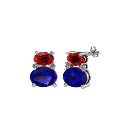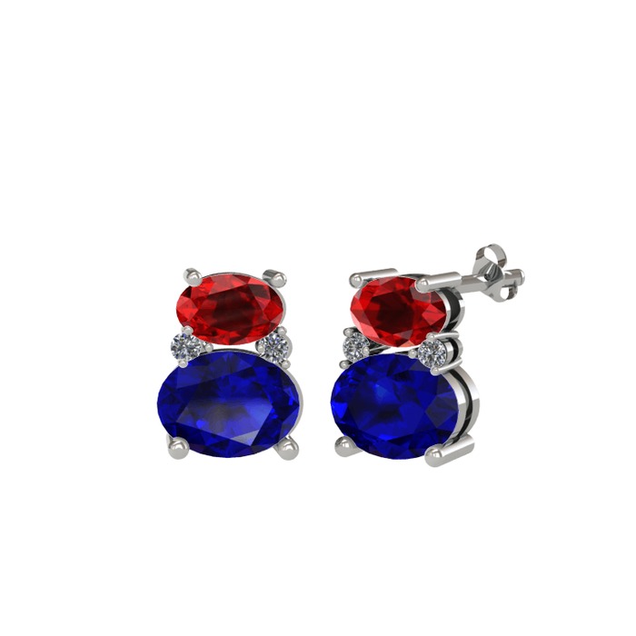 Garnet, lab safir ve pırlanta 18 ayar beyaz altın küpe (0.072 karat)