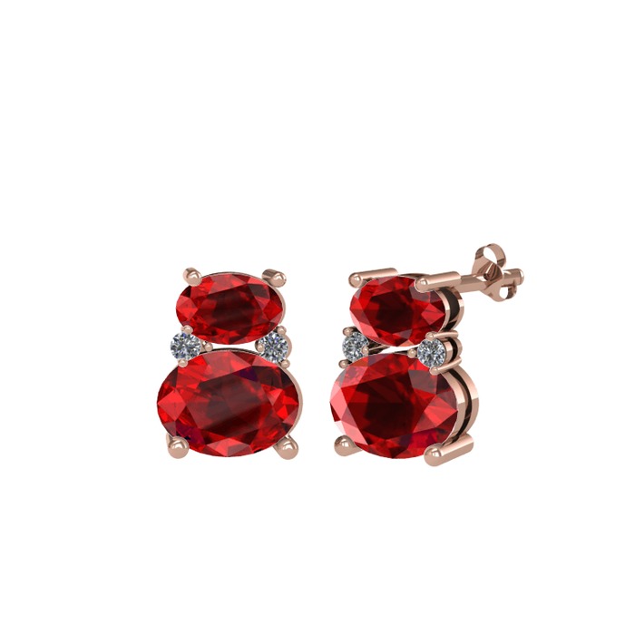 Garnet ve pırlanta 14 ayar rose altın küpe (0.072 karat)