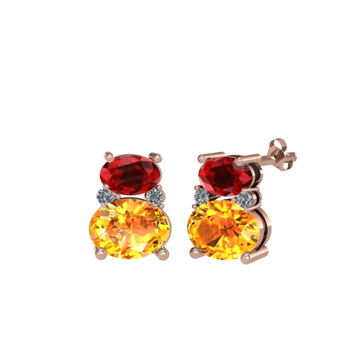 Garnet, sitrin ve pırlanta 14 ayar rose altın küpe (0.072 karat)