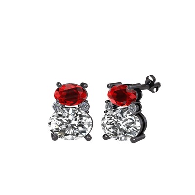 Garnet, swarovski ve pırlanta 925 ayar siyah rodyum kaplama gümüş küpe (0.072 karat)