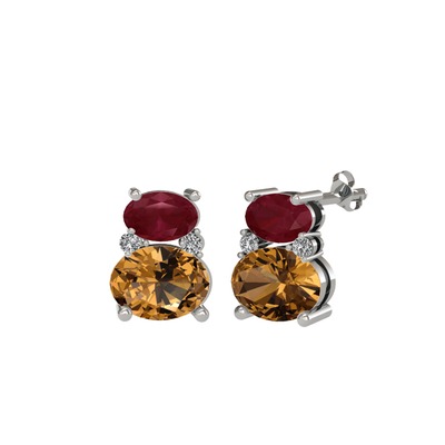 Kök yakut, dumanlı kuvars ve swarovski 8 ayar beyaz altın küpe