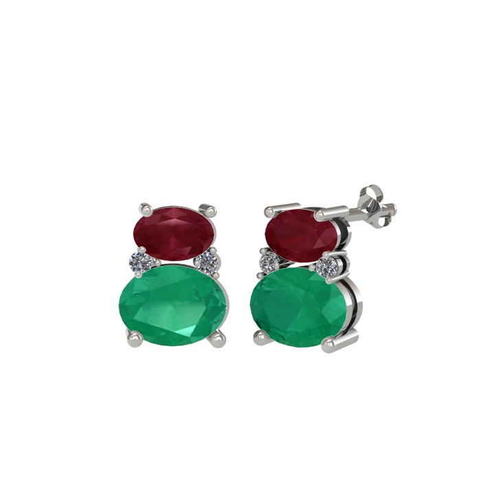 Kök yakut, kök zümrüt ve pırlanta 8 ayar beyaz altın küpe (0.072 karat)