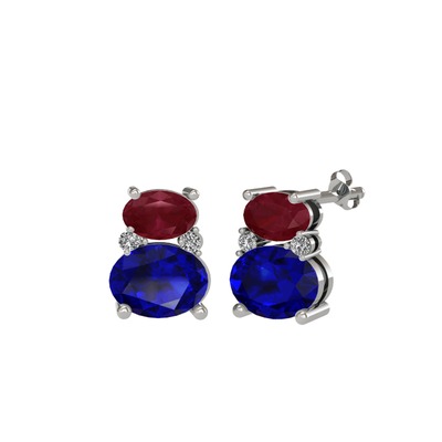 Kök yakut, lab safir ve beyaz zirkon 14 ayar beyaz altın küpe