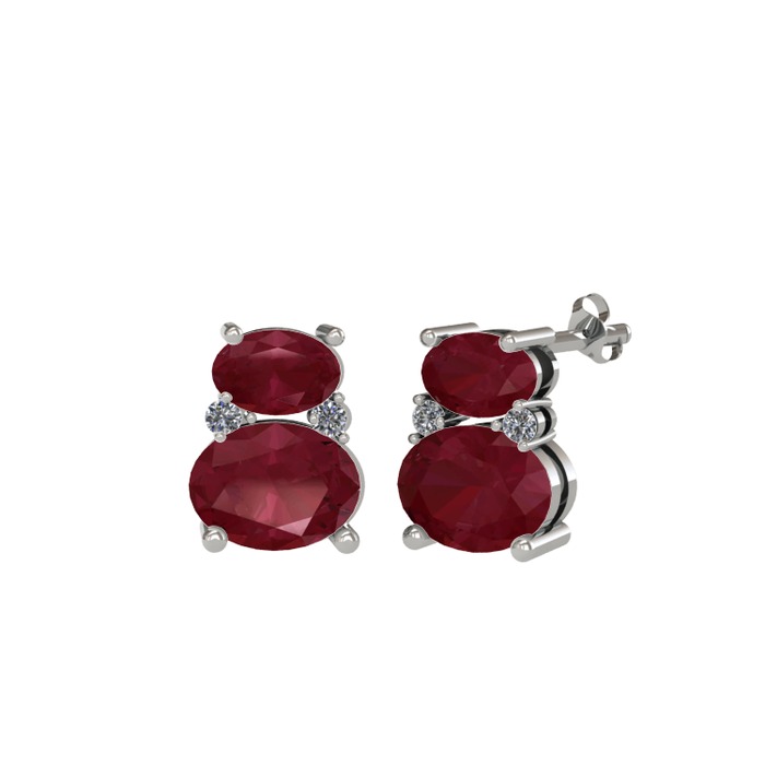 Kök yakut ve pırlanta 8 ayar beyaz altın küpe (0.072 karat)