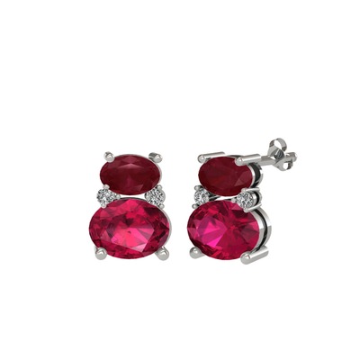 Kök yakut, rodolit garnet ve beyaz zirkon 925 ayar gümüş küpe