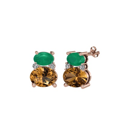 Kök zümrüt, dumanlı kuvars ve swarovski 8 ayar rose altın küpe