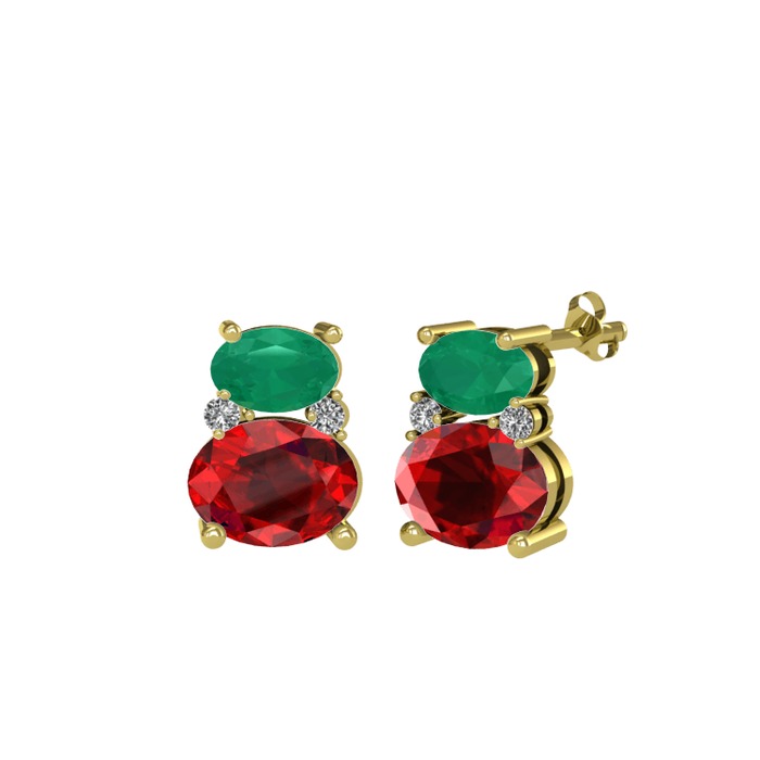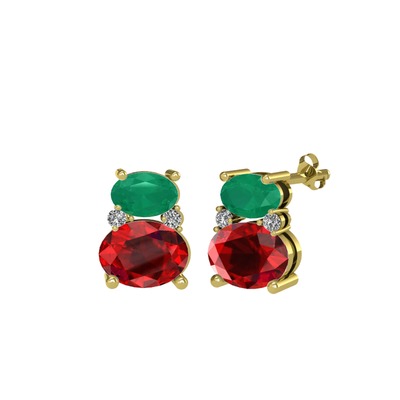 Kök zümrüt, garnet ve beyaz zirkon 925 ayar altın kaplama gümüş küpe