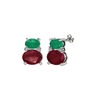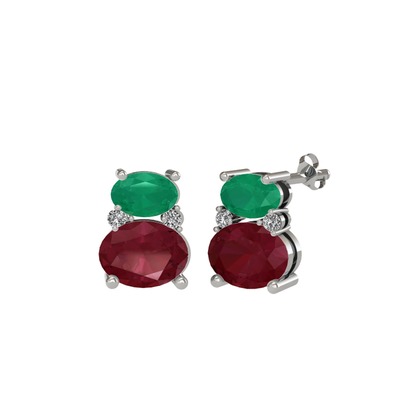 Kök zümrüt, kök yakut ve beyaz zirkon 18 ayar beyaz altın küpe