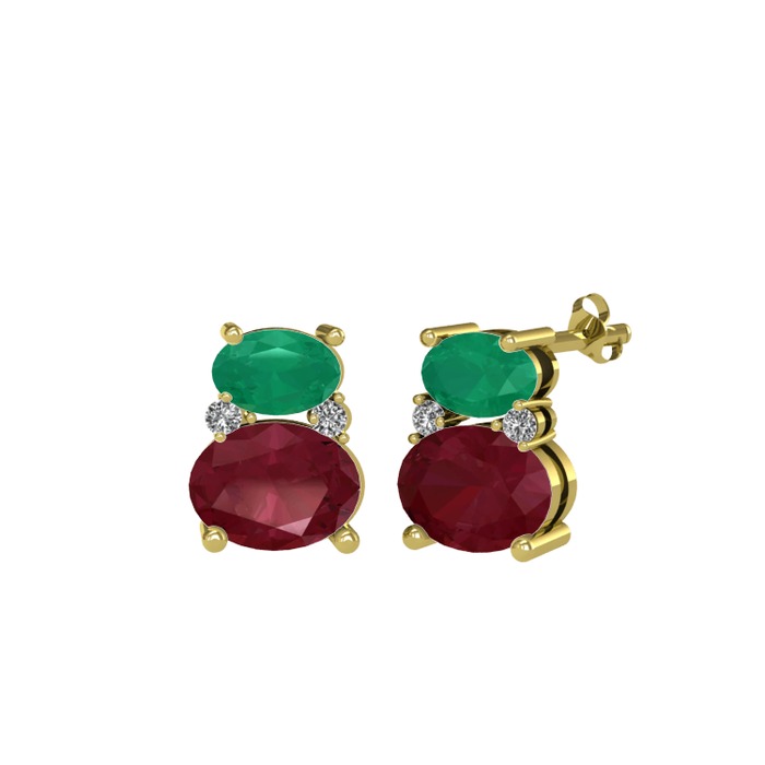 Kök zümrüt, kök yakut ve swarovski 8 ayar altın küpe